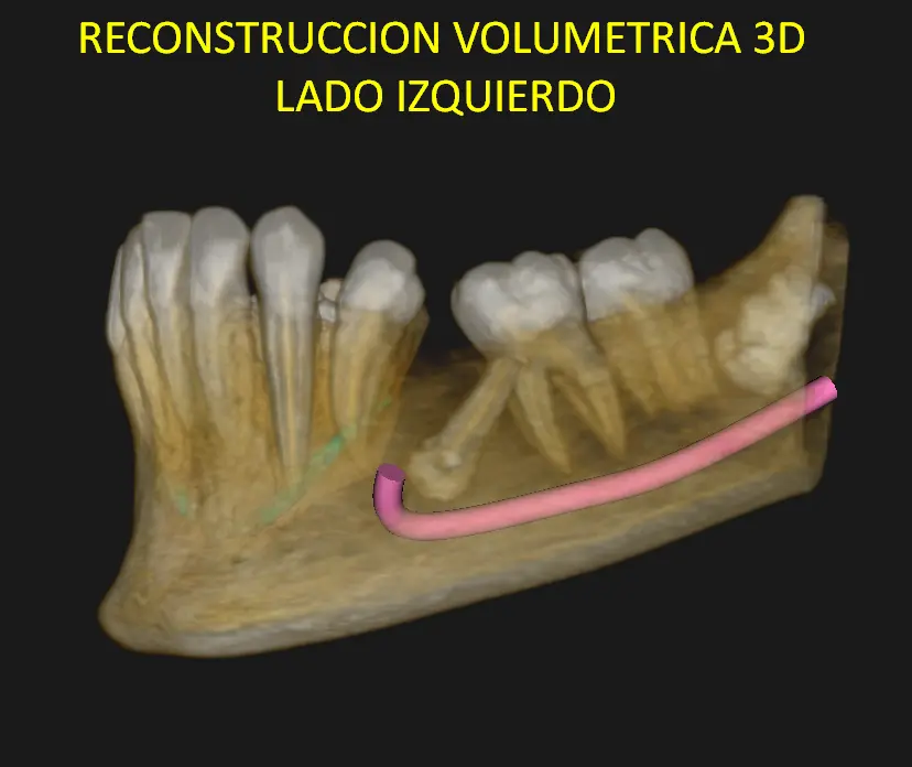 Ante este hallazgo, la profesional tratante solicita la realización de una tomografía Cone Beam del maxilar inferior completo, con el objetivo de obtener mayor información sobre la posición tridimensional de las piezas retenidas.