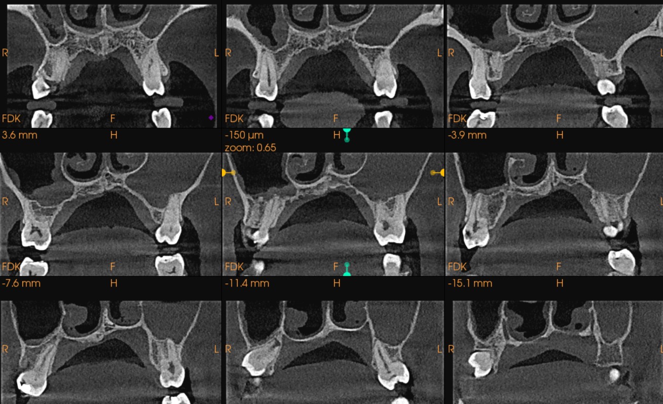 Paciente de 22 años, se presenta en el centro de imágenes para la realización de una tomografía Cone Beam de maxilar superior, para control general por colocación de implante.